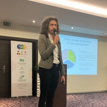 Sabine Krause ist seit 14 Jahren als Ausbilderin, Mediatorin, Beraterin und Coach im Gesundheitsbereich tätig. Sie berichtete uns aus Ihrer reichhaltigen Erfahrung mit Mediation im Gesundheitswesen und ging dabei insbesondere auf Sinnhaftigkeit, die Machbarkeit und die Besonderheiten von Mediation zwischen Behandelnden ein.